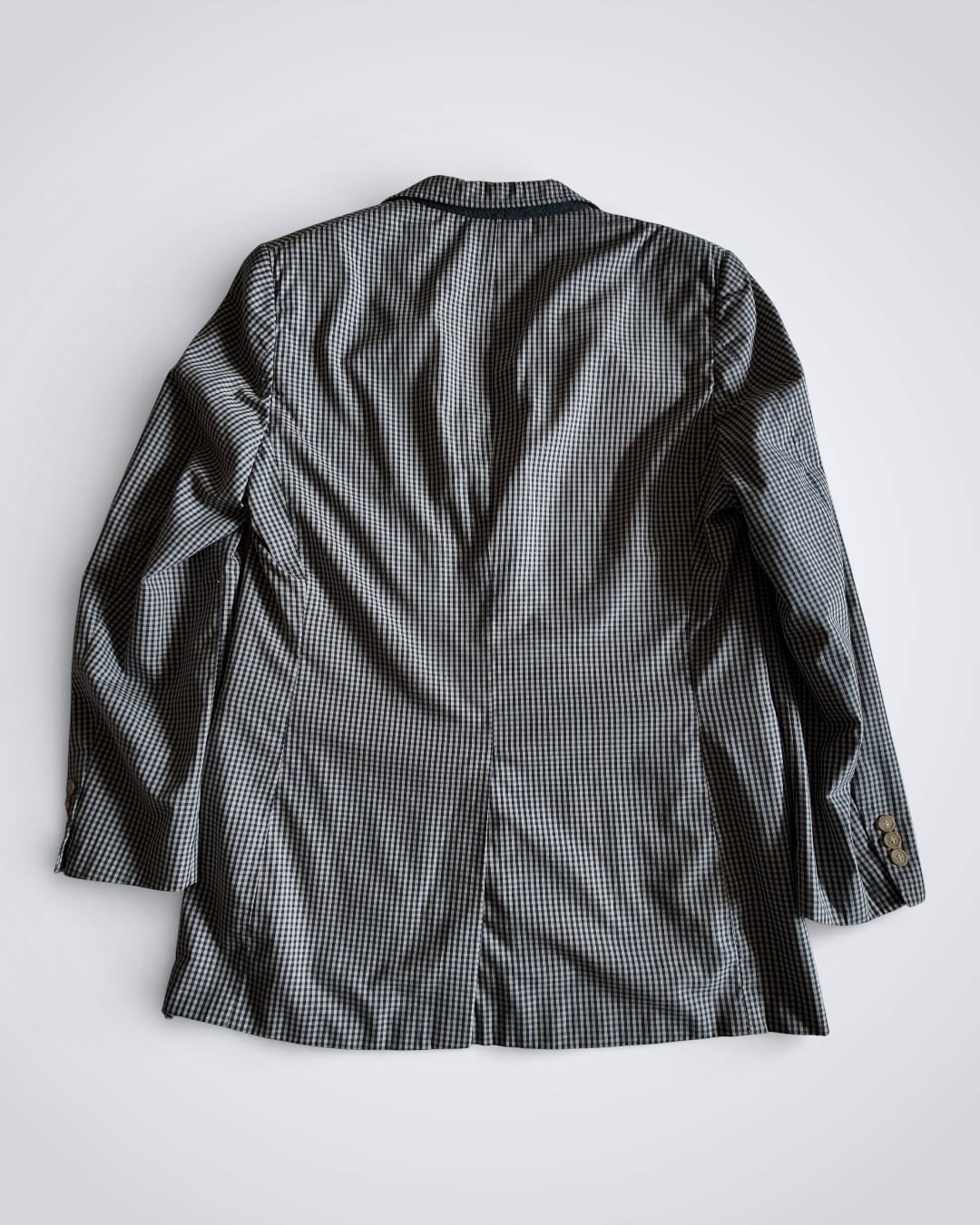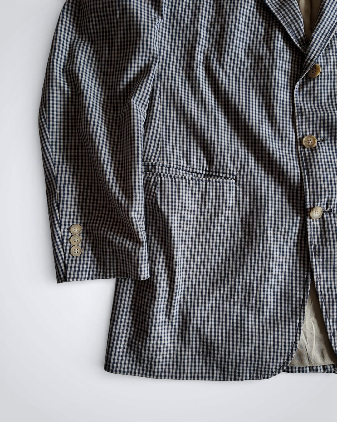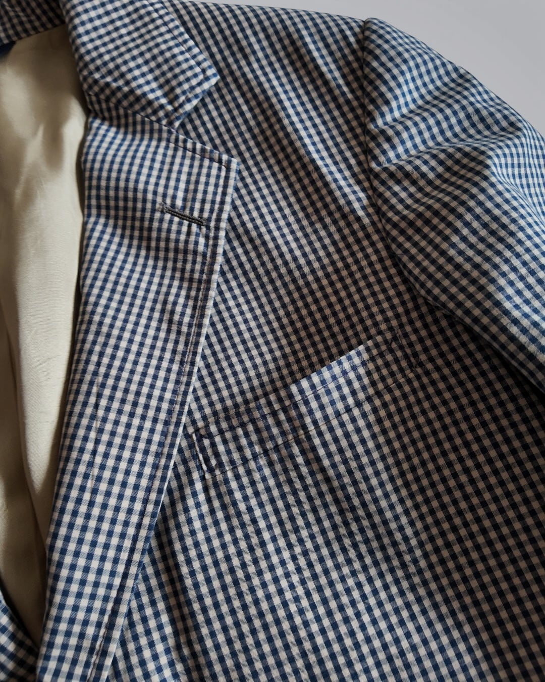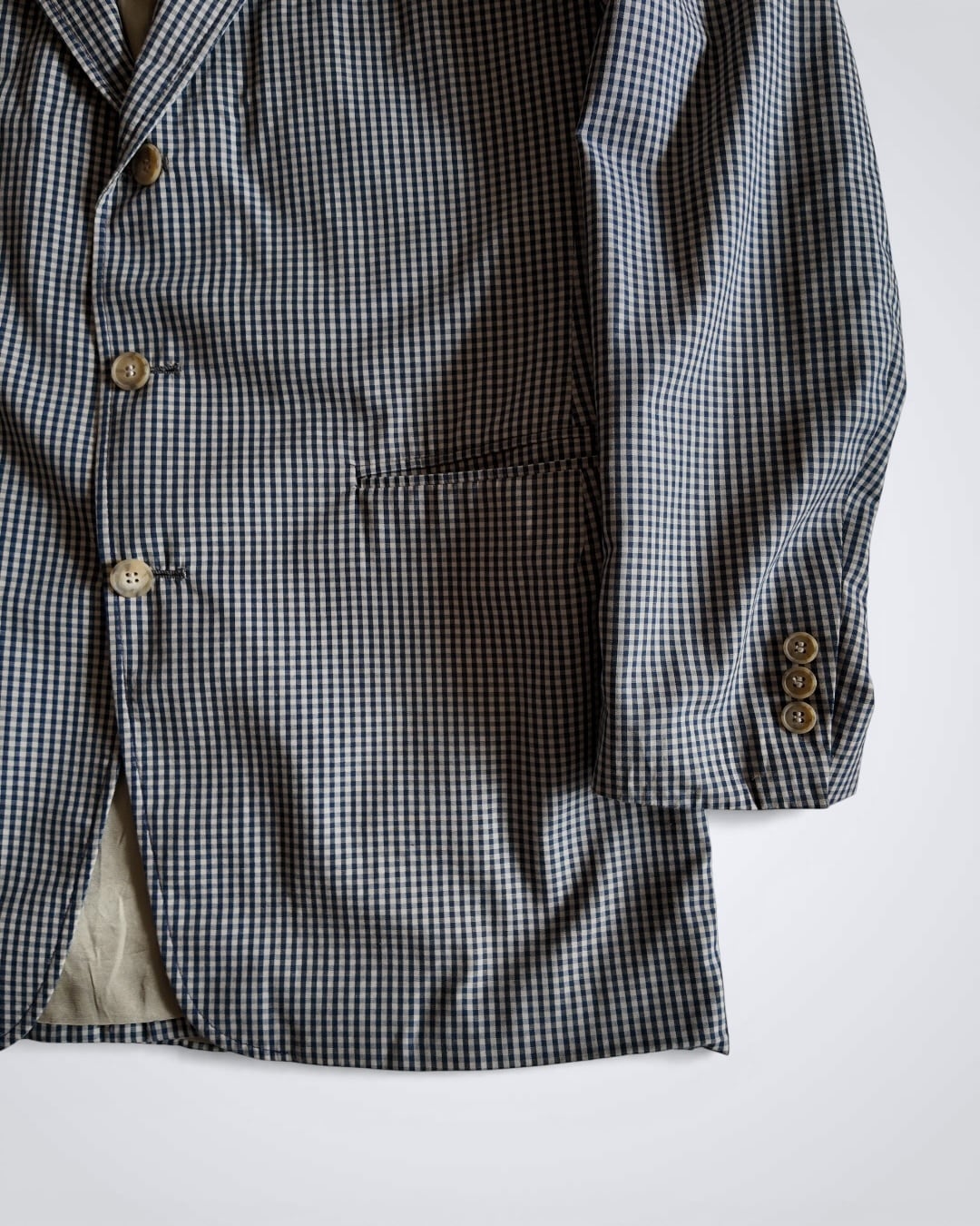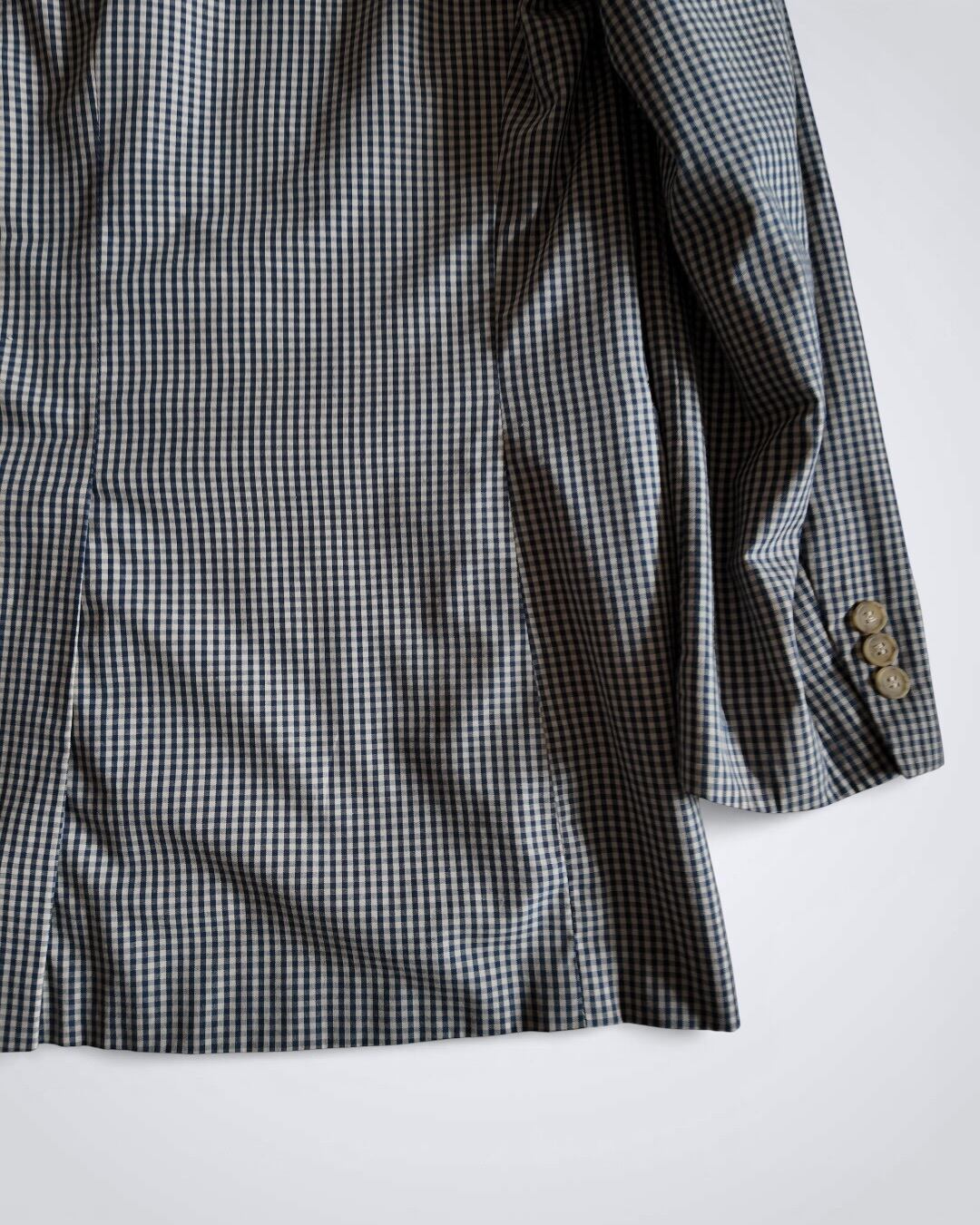 テーラードジャケットにギンガムチェックと