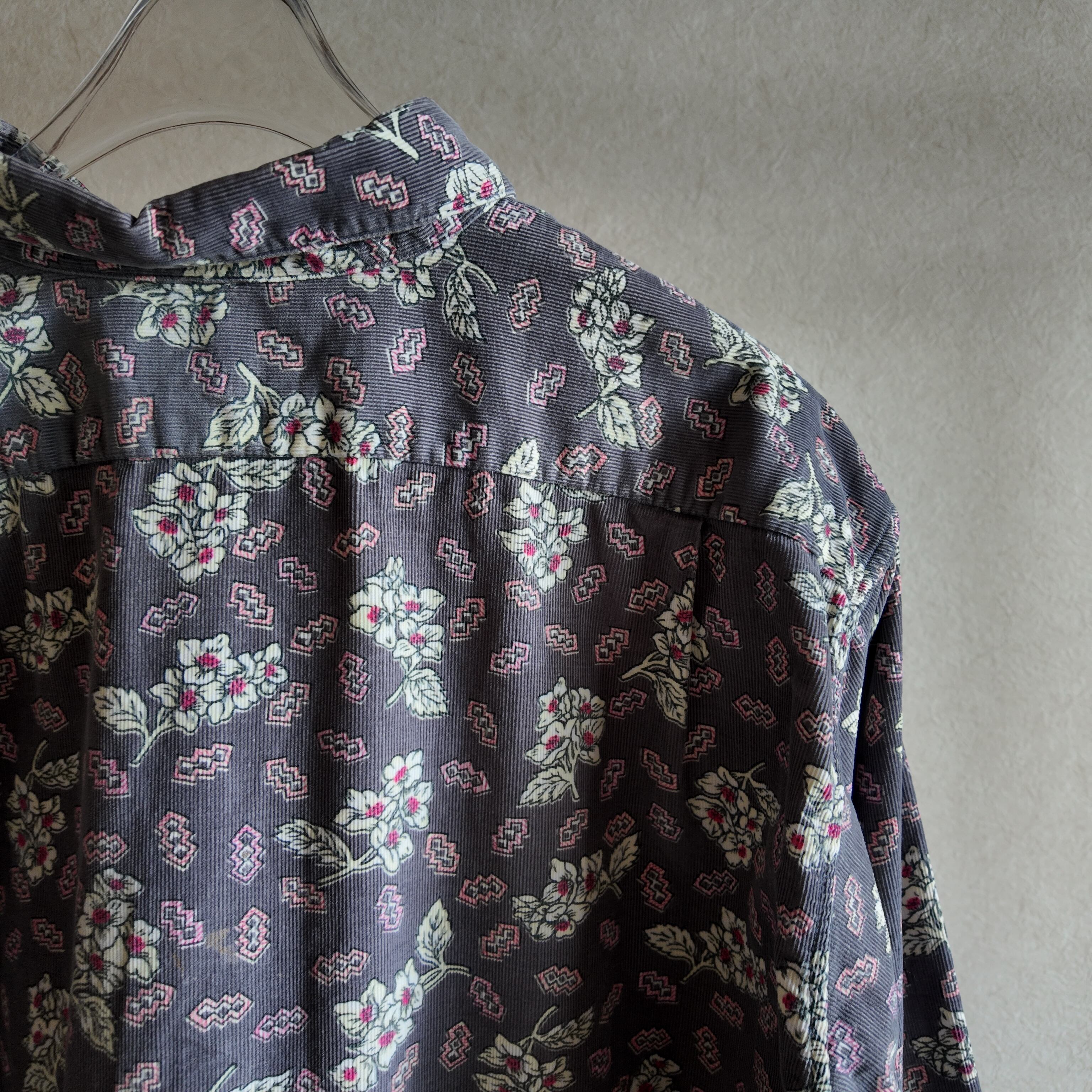 レインスプーナーとなると半袖ハワイアンシャツを想像する方がほとんどだと思いますが、こちらは長袖プリントコーデュロイ。